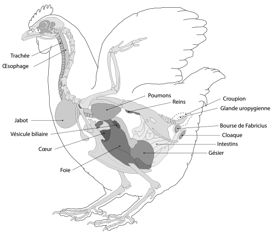 Faites pénétrer la lame par l’ouverture cloaquale et faites-la ressortir vis-à-vis de la pointe du bréchet (sternum). Tranchez ensuite vers le haut pour ouvrir complètement la cavité pelvienne.