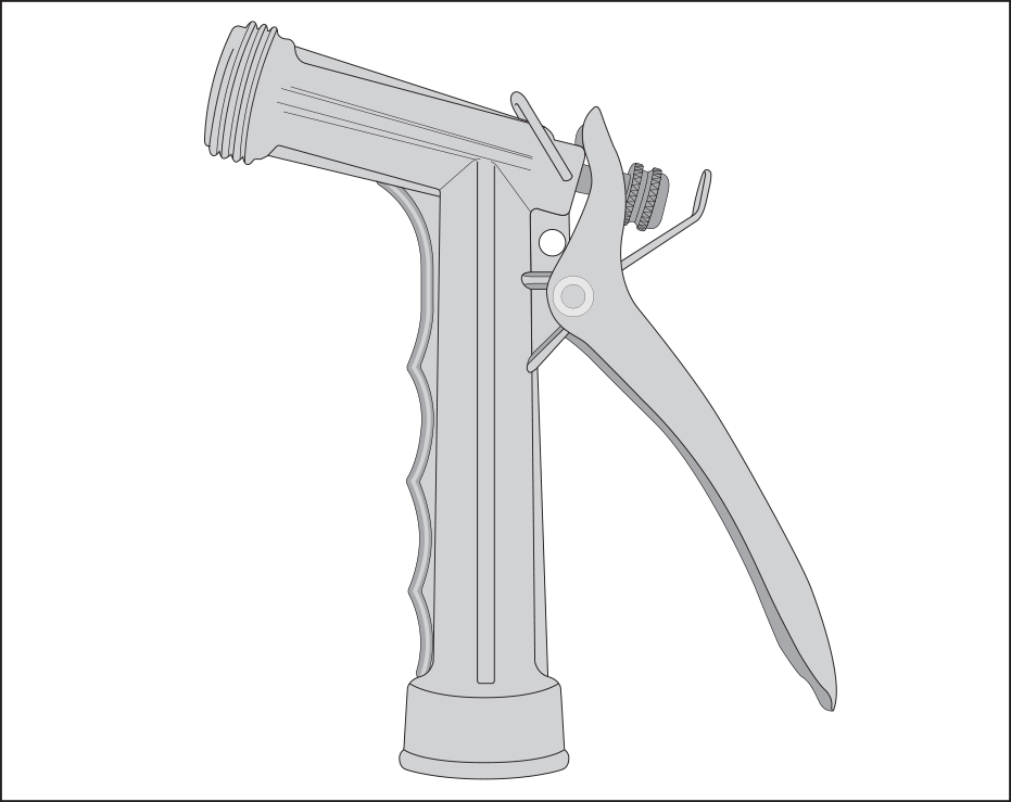 - Un pistolet d’arrosage raccordé à un boyau d’eau potable pour le rinçage des poulets pendant et après la plumaison (1);