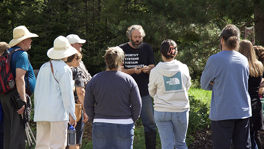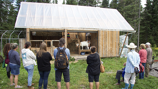 Ateliers d'une journée offerts à Sainte-Lucie-des-Laurentides par Amélie Dion et Dominic Lamontagne, à une centaine de kilomètres de Montréal, sur une terre forestière de 40 acres à 500 mètres d’altitude en zone de rusticité 3a. Apprenez, en petits groupes de dix, les bases de la paysannerie omnicole vivrière québécoise: comment faire l’élevage de coqs à chair, de poules pondeuses et de chèvres laitières. Prenez photos et vidéos, régalez-vous de notre table champêtre et participez au ré-empaysannement du monde. Venez vivre et goûter à l'omniculture responsable! Voir l'horaire complet (2026). Inscrivez-vous à notre infolettre pour être avertis lorsque les prochaines dates d'inscription seront annoncées.